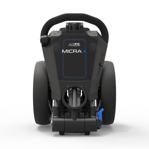 The new PowaKaddy Micra is a stylish lightweight and compact push trolley with a simple folding and unfolding mechanism. The clever two-step folding system ensures the Micra folds down compactly to fit into the smallest of spaces. Perfect for when you need that extra room.